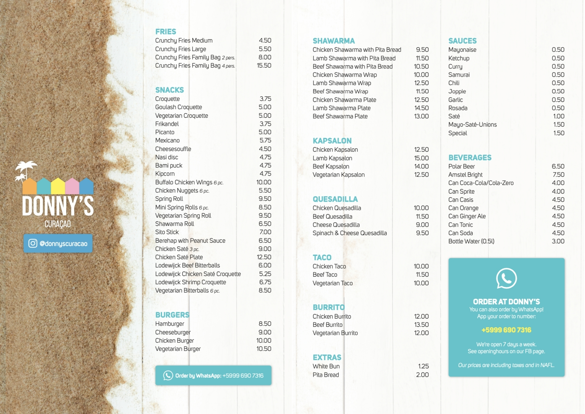 Check hier het menu en bestel bij de snackbar of gebruik WhatsApp.